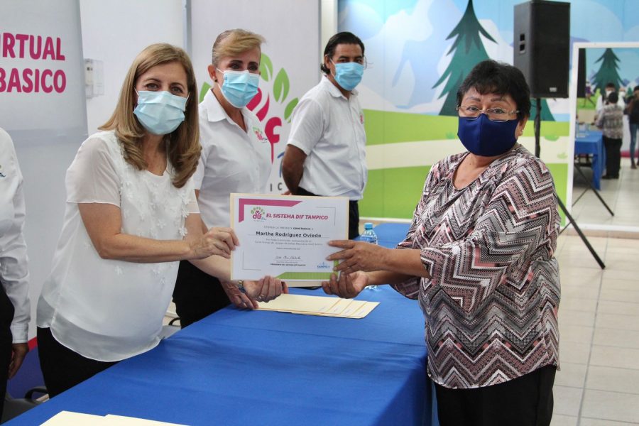 Como parte de las acciones para avanzar en una sociedad más incluyente, la Presidenta del sistema DIF Tampico, Aída Féres de Nader llevó a cabo la entrega de Constancias a los alumnos que concluyeron el Curso Virtual de Lengua en Señas Mexicana en su etapa de nivel básico.