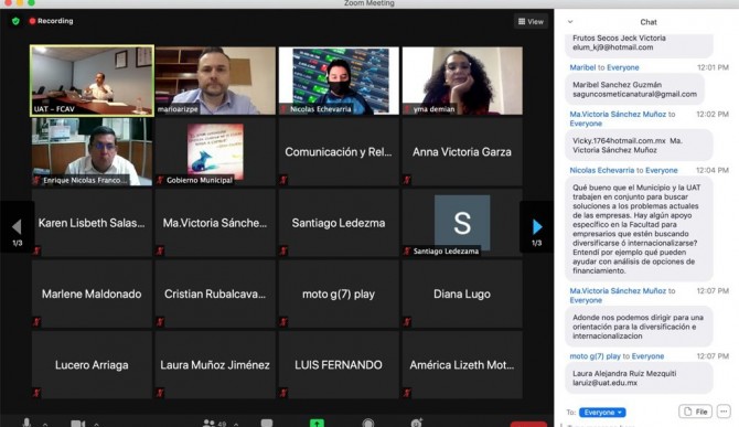 El Gobierno Municipal de Victoria presidido por la alcaldesa Pilar Gómez en vinculación con la Universidad Autónoma de Tamaulipas ofreció el taller en línea “La importancia de la diversificación e internacionalización como estrategia empresarial post COVID” con el registro de más de 60 participantes.