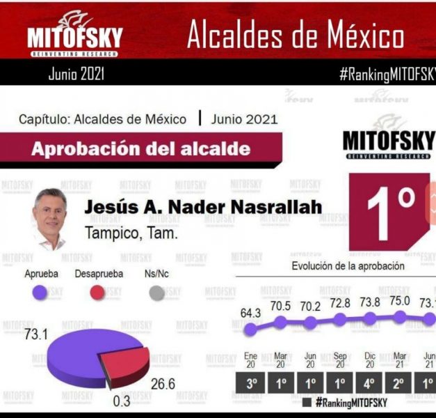 Cabe destacar que apenas el pasado 6 de junio, Jesús Nader vio reflejada dicha aprobación por parte de los tampiqueños, al obtener su reelección, con casi 20,000 votos más que su contrincante que quedó en segundo lugar, lo que demuestra el buen desempeño que viene ejerciendo a cargo de la comuna porteña.
