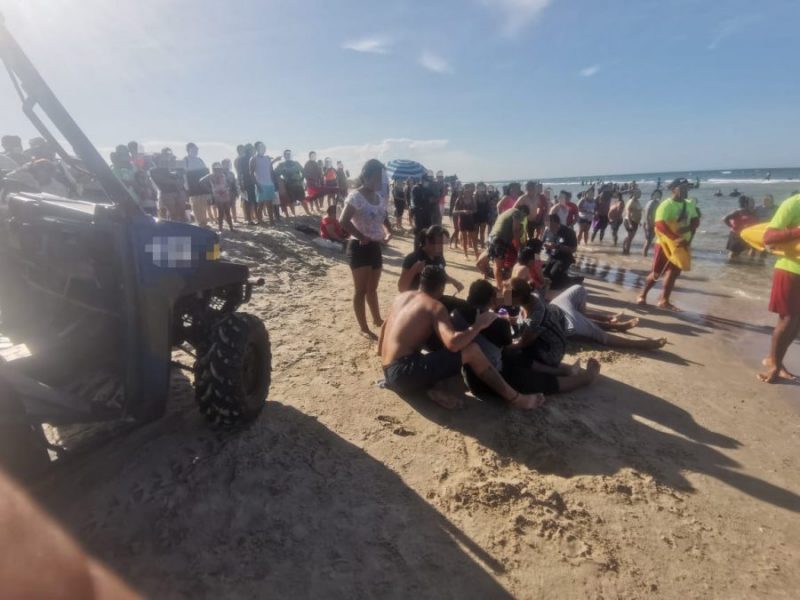 Ante esta situación, los Policías Estatales arribaron al lugar se encontraban dos menores de 12 y 14 años de edad, que minutos antes habían sido arrastrados por las olas y rescatados por familiares, siendo atendidos por Paramédicos de Protección Civil quienes valoraron su estado de salud.