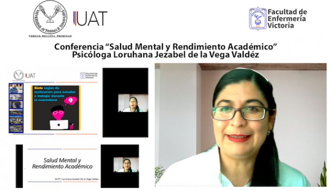La Facultad de Enfermería Victoria (FEV) de la Universidad Autónoma de Tamaulipas (UAT) impartió la conferencia virtual “Salud mental y rendimiento académico”, en el marco de las jordanas académicas dirigidas al desarrollo integral de la juventud.