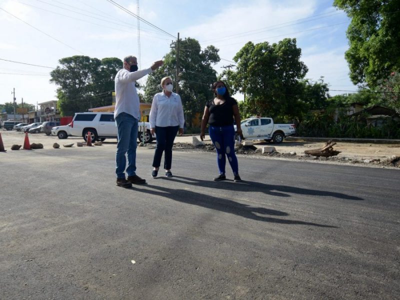 Supervisa alcaldesa pavimentación asfáltica de la Avenida Miramar, en el ejido Ricardo Flores Magón, trabajos en los que se aplica una inversión superior a los 7 millones 800 mil pesos
