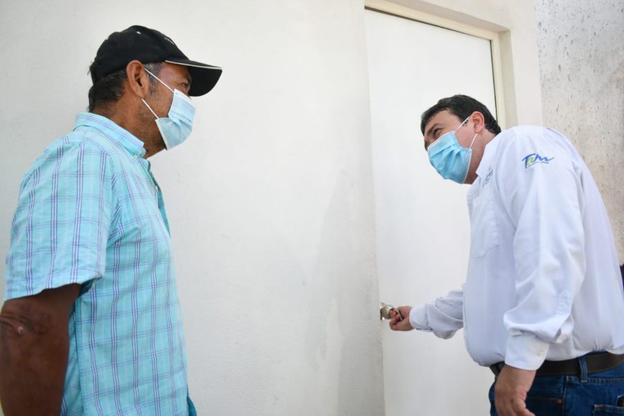 Este jueves, el Alcalde hizo entrega de 5 cuartos dormitorio, 3 de ellos en la colonia Paraíso Norte, uno en la San Benito y otro más en la colonia Graciano Sánchez, en esta última, fue el señor Benito Báez Ortiz, quien agradeció al Alcalde tan oportuno e invaluable regalo, ya que este viernes celebrará su cumpleaños número 71.