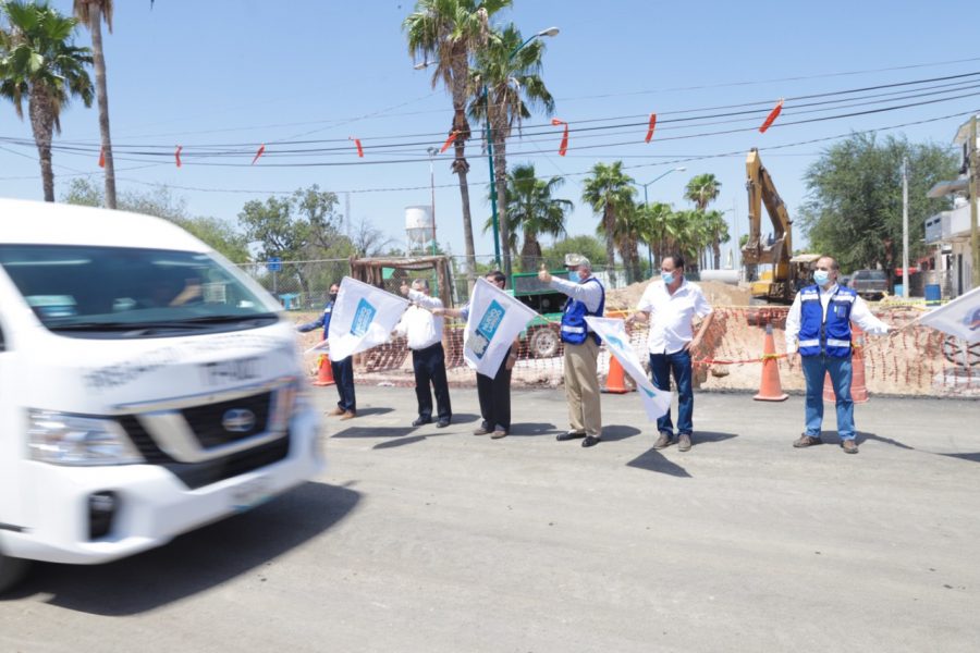 El alcalde Arturo Sanmiguel Cantú reabrió a la circulación vial la calle González, en la que se construyó un tramo de colector de drenaje nuevo en el cruce con América, después que las lluvias atípicas de este año provocaron un socavón de 20 metros de diámetro.
