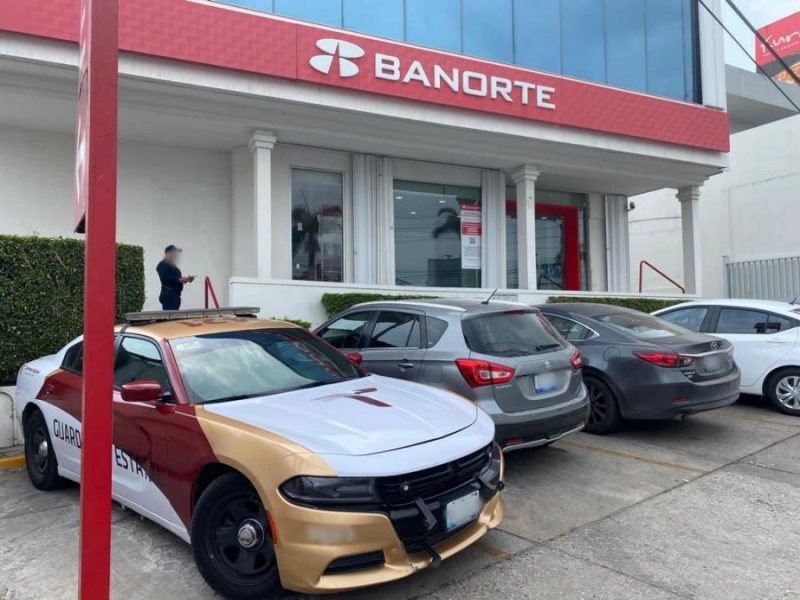 Durante el operativo los elementos de la Guardia Nacional dialogan con el personal administrativo y cuentahabientes, a quienes se les proporciona el número de emergencias 911 y el 089 para denuncias anónimas.