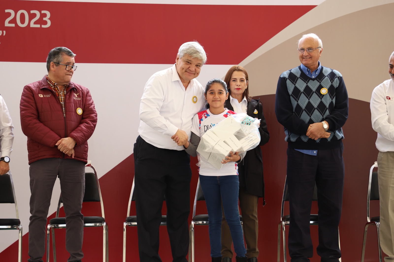 Durante el evento, el cual se llevó a cabo en la explanada cívica de la unidad deportiva “Adolfo Ruíz Cortines” de esta ciudad, se entregaron, de manera simbólica, cinco kits de insumos para la diabetes, los cuales contienen sensores, reservorios y catéter, así como microinfusoras de insulina.