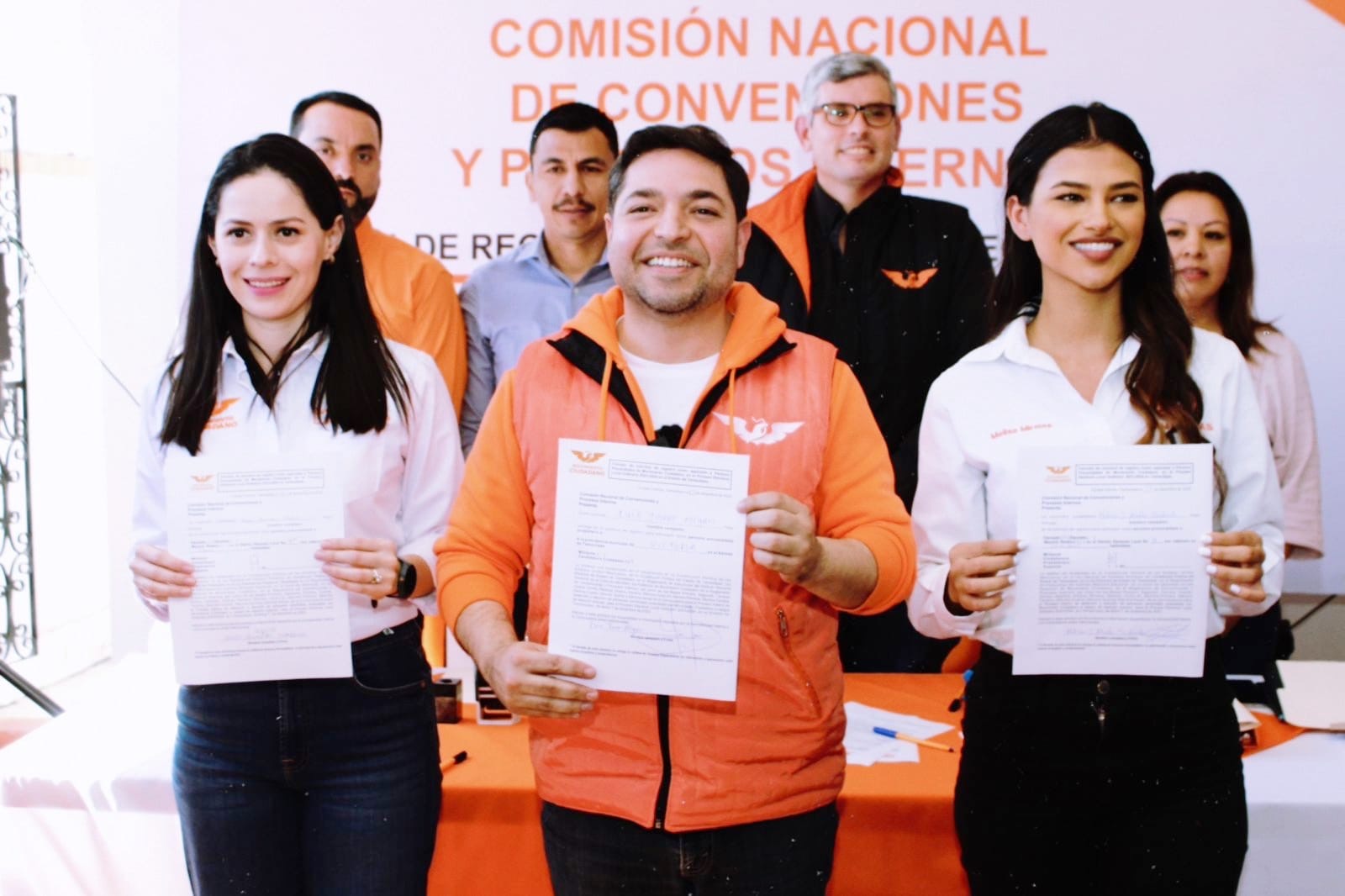 Acompañado por Melissa Mireles, quien busca la precandidatura para la diputación del Distrito XIV y Mayra Benavides, que se registró para el Distrito XV, Luis Torre llegó respaldado por cientos de simpatizantes ante la comisión.