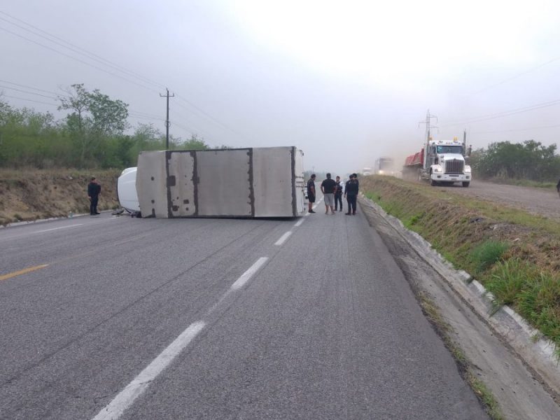 Afectada circulación en la carretera Victoria-Monterrey por volcadura