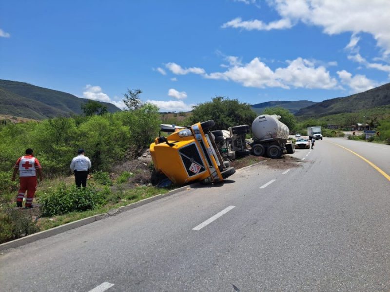 Una pipa cargada con 62 mil litros de gasolina volcó esta mañana en la carretera estatal 126 conocida como Rumbo Nuevo dejando solo daños materiales.