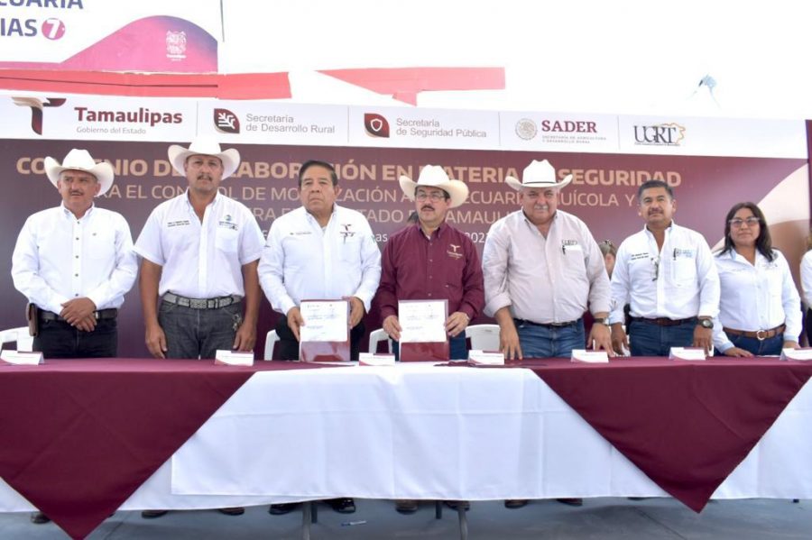 Con la finalidad de dar certidumbre y confianza a los productores, comercializadores y consumidores de Tamaulipas, la Secretaría de Desarrollo Rural, la Secretaría de Seguridad Pública y la Unión Ganadera Regional de Tamaulipas llevaron a cabo una firma de Convenio de Colaboración en Materia de Seguridad para el Control de Movilización Agropecuaria, Forestal y Pesquera en el estado.