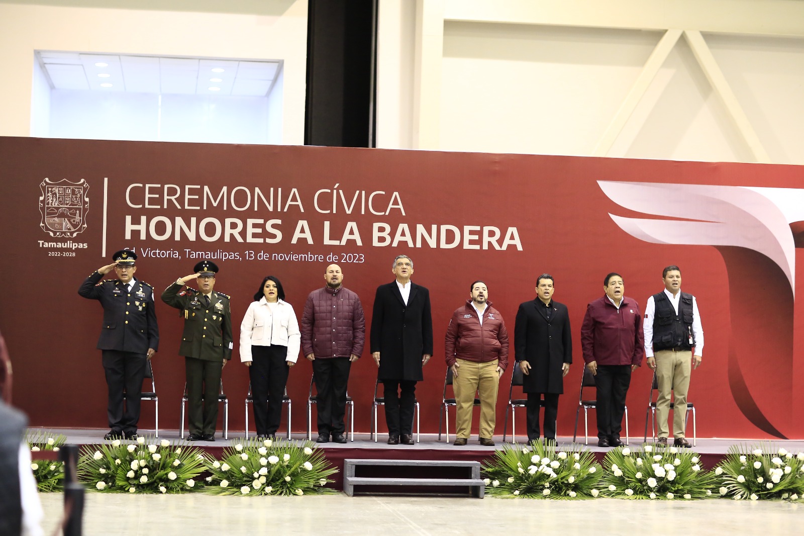 También se dieron cita en este evento: Héctor Joel Villegas González, secretario general de Gobierno; Eduardo Gattás Báez, presidente municipal de Victoria; el general D.E.M. Julio César Islas Sánchez, comandante de la 48a. Zona Militar; general DEM Francisco Alvarado Terán, coordinador de la Guardia Nacional en Tamaulipas; la diputada Úrsula Salazar Mojica, presidenta de la Junta de Coordinación Política del Congreso del Estado; Sergio Hernando Chávez García, secretario de Seguridad Pública y Luis Lauro Reyes Rodríguez, delegado Federal de Programas para el Bienestar, así como integrantes del gabinete estatal y de la Mesa de Seguridad.