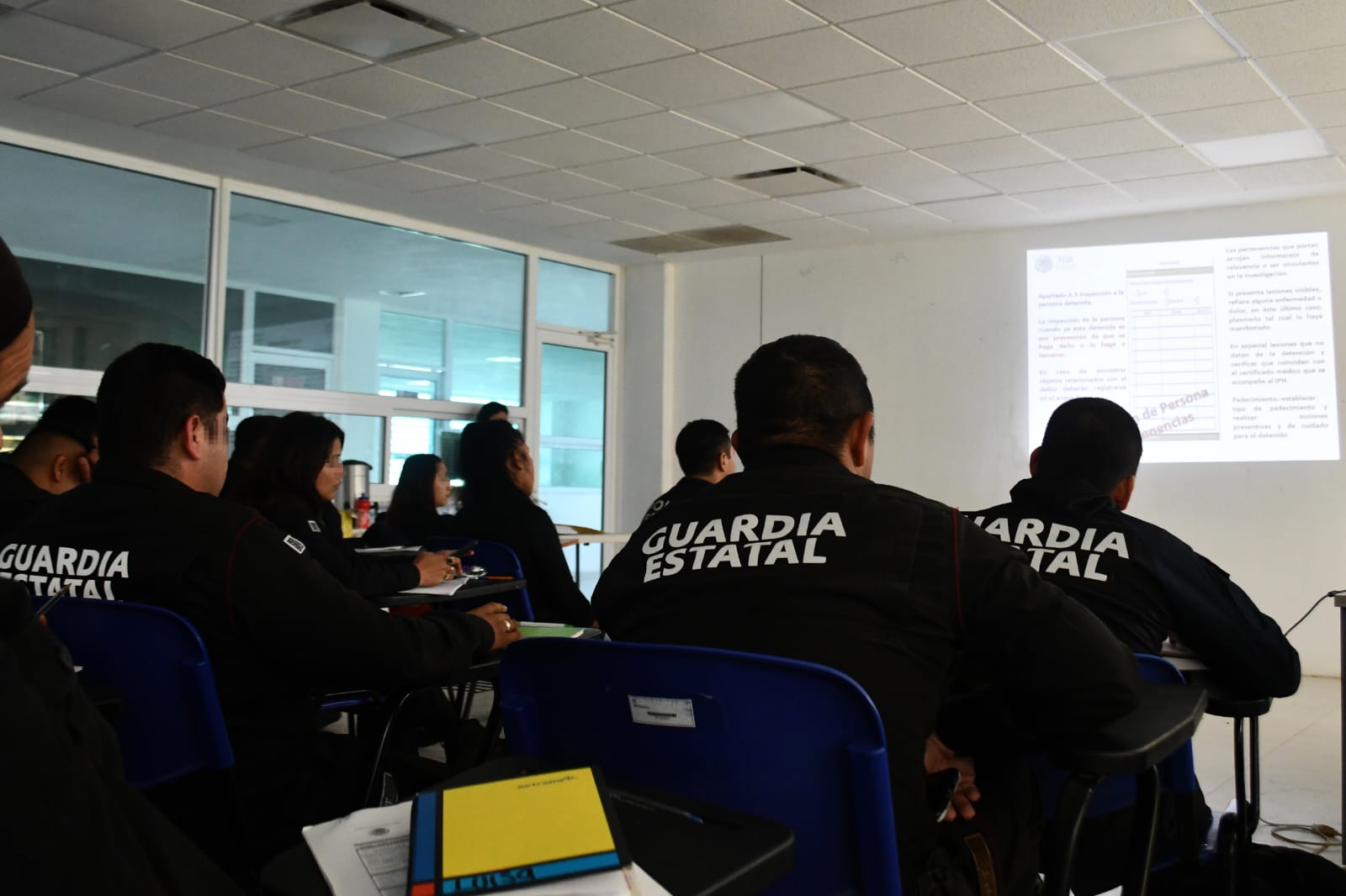 En apego al compromiso de capacitación policial permanente de la Secretaría de Seguridad Pública de Tamaulipas (SSPT), personal de la Guardia Estatal atendió el curso-taller ‘’Derechos Humanos y llenado del Informe policial Homologado’’ impartido por personal de la Fiscalía General de la República (FGR).