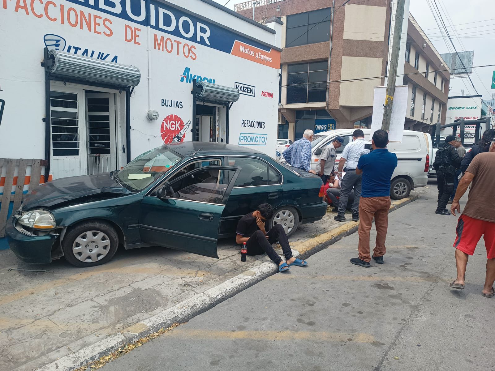 Una persona de la tercera edad resultó lesionada al igual que su nieto después de provocar un aparatoso accidente vial al omitir con su vehículo una señal de alto, en el Seis Carrera Torres.