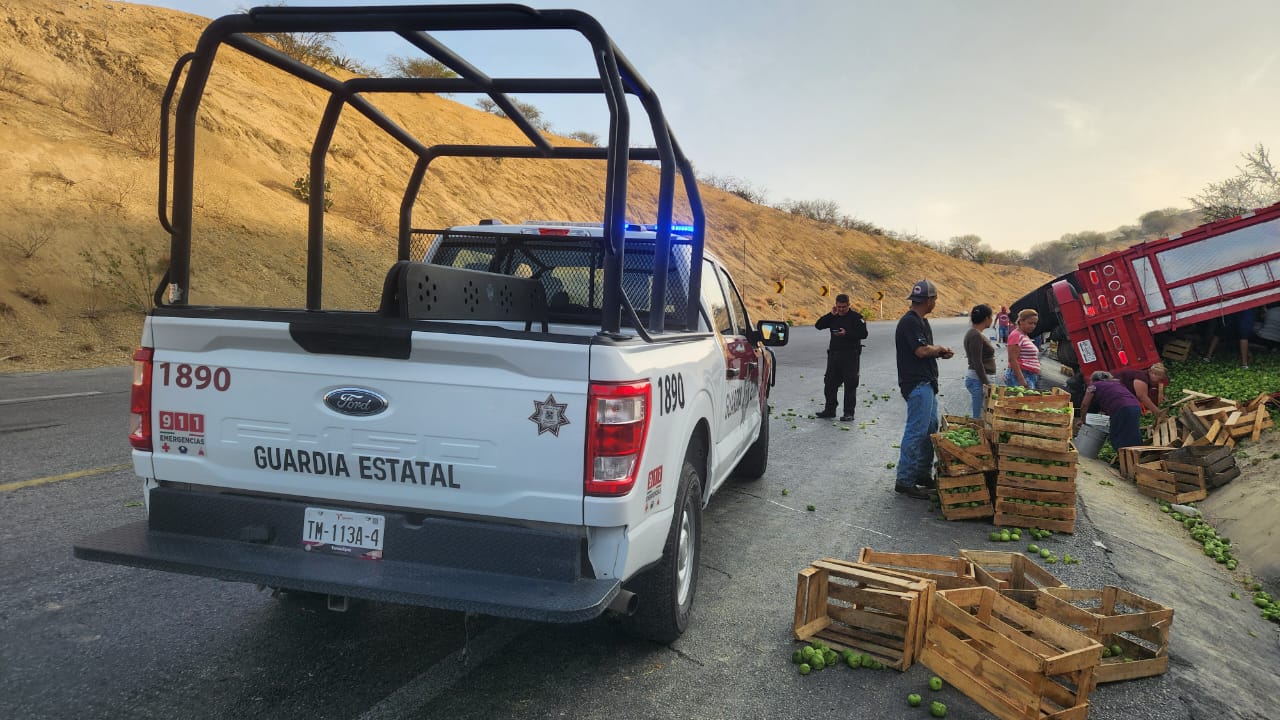 La pesada unidad transportaba tomatillo proveniente de la Piedad Michoacán con destino al municipio de González Villarreal.