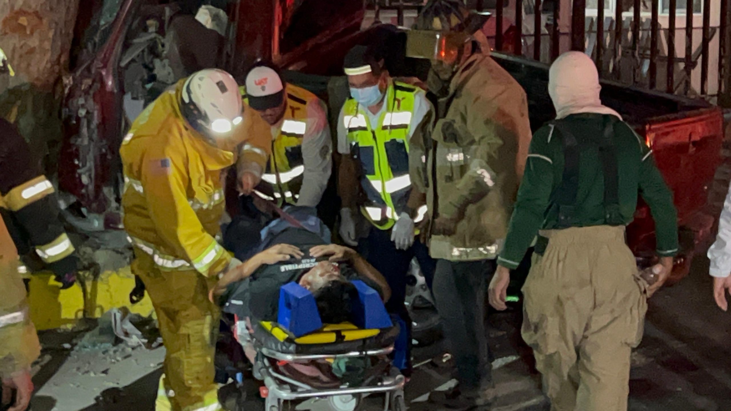 Paramédicos de Protección Civil y Bomberos, así como paramédicos de Protección Civil de Gobierno del Estado con el uso de las “quijadas de la vida” lograron liberarlo.