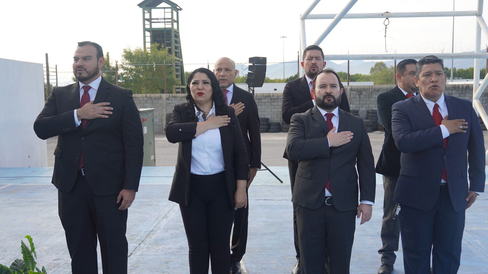 “En esta primera ceremonia de honores del 2024, si ustedes se fijan es distinta desde el lugar en el que estamos apostados”, dijo el rector al referirse al inicio de construcción de una techumbre autorizada por el gobernador Américo Villarreal Anaya en una de sus visitas a las instalaciones y gracias también al respaldo del secretario Sergio Hernando Chávez García ante la necesidad de realizar las prácticas de elementos en activo y alumnos quienes las hacían bajo las inclemencias del sol.