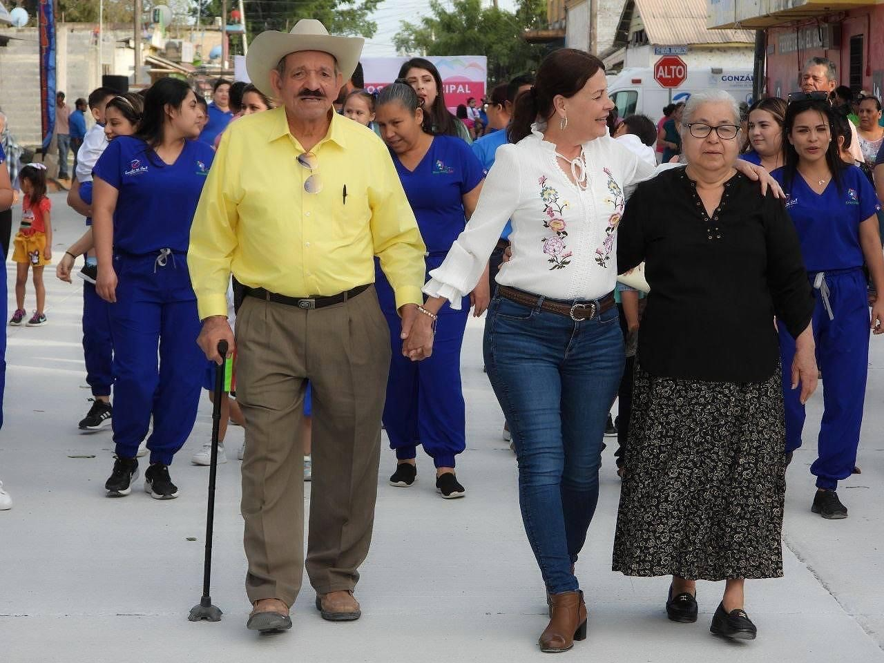 En la presente administración y de una manera histórica, se han cumplido hasta ahora más de 41 mil 069 metros cuadrados de pavimentaciones en GonzálezGonzález, Tamaulipas.- La alcaldesa Gaby Verlage presidió la inauguración de la calle Miguel Hidalgo, obra que representa un progreso en materia de infraestructura urbana y mejora las condiciones de vida para vecinos y usuarios de la vialidad.Durante una gira de trabajo por el municipio, la edil destacó que durante la presente administración, se ha cumplido con pavimentaciones hidráulicas cubriendo hasta ahora más de 41 mil 069 metros cuadrados en toda la región, históricamente reconocida como la que más de estas obras se han desarrollado.«Me honro decir que después de un análisis que hicimos de las administraciones anteriores y la más cercana que fueron dos administraciones continuas por una reelección, nosotros ya sumamos muchos más metros en un poco más de dos años, estoy contenta porque les he cumplido, estoy contenta porque no le he fallado a mi pueblo y estoy contenta porque este proyecto tiene continuidad y estas obras van a marcar historia en González, González está cambiando y aquí en González la transformación la hacemos nosotros».La calle Miguel Hidalgo se encuentra entre las calles Juan Aldama y José María Morelos de la colonia Zona Centro de González, la misma pasa directamente frente a las instalaciones de Mi Guardería DIF y gracias a ello los estudiantes y vecinos del sector tendrán más certeza.Los trabajos de pavimentación consideraron la cobertura con concreto hidráulico, además de la rehabilitación de la red de agua potable, colocación de tomas domiciliarias y rehabilitación de la red de drenaje y descargas sanitarias.«Gracias por siempre tenerme en sus oraciones, gracias por siempre compartir conmigo esos logros; Nos quedan muchos metros cuadrados de pavimentación con concreto hidráulico por realizar, esto continúa, habrá más obra, hoy sumamos ya más de 41 mil metros cuadrados en pavimentación hidráulica en la administración que dirige una servidora».