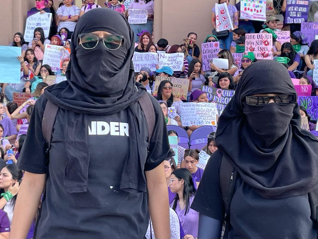 Cientos de mujeres de todas las edades realizaron un plantón en las escalinatas del edificio del Gobierno del Estado, en Ciudad Victoria, como parte de las actividades del día internacional de la mujer.