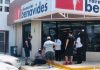 Cliente se tropieza y pega con una puerta de una farmacia...