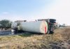 Vuelca auto tanque cargado con aceite para moto en la carretera...
