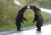 Captan feroz pelea entre dos osos en carretera de Canadá