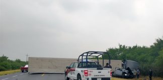Vuelca trailer y cae sobre camioneta en la Reynosa-San Fernando; cinco...