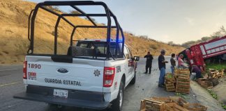 Volcadura de camión con carga de tomatillo en la carretera Jaumave-Victoria