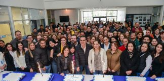 Celebra alcalde cumpleaños trabajando y con empleados