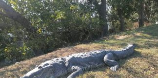 Impresionante cocodrilo salió de su hábitat en la Laguna del Carpintero...