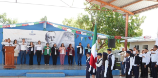 Gaby Verlage preside honores a la bandera